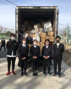 生徒の皆様、職員様、保護者の皆様にご協力頂き総重量765キロもの文房具用品、靴、鞄、食器、自転車などのリユース品が集まりました。